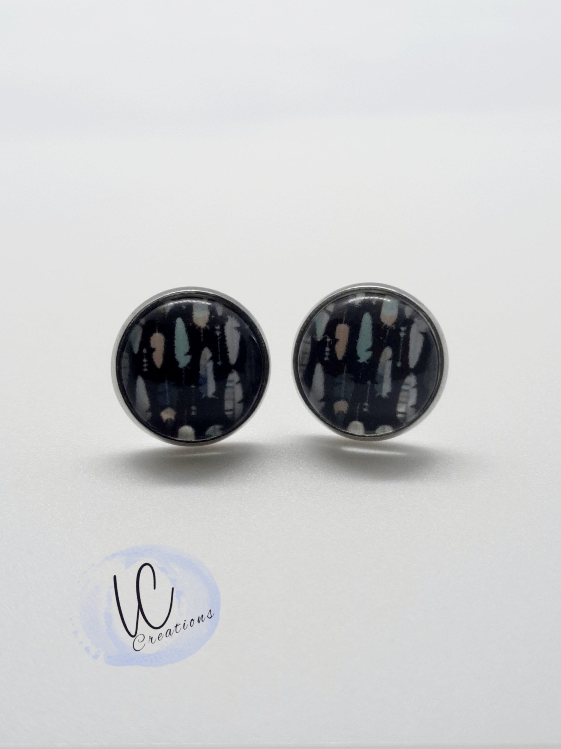 12mm cabochon stud with hypoallergenic surgical stainless steel backing!